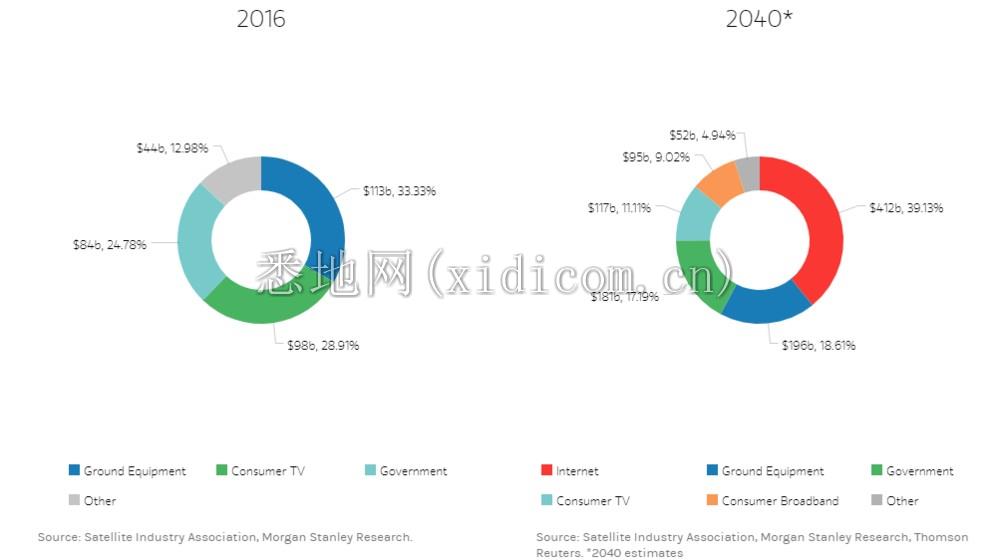 摩根士丹利(Morgan Stanley)的航天团队估计:在短短20年后,也就是2040年,现在市场价值约3500亿美元的全球航天工业可能会激增至超过1万亿美元。