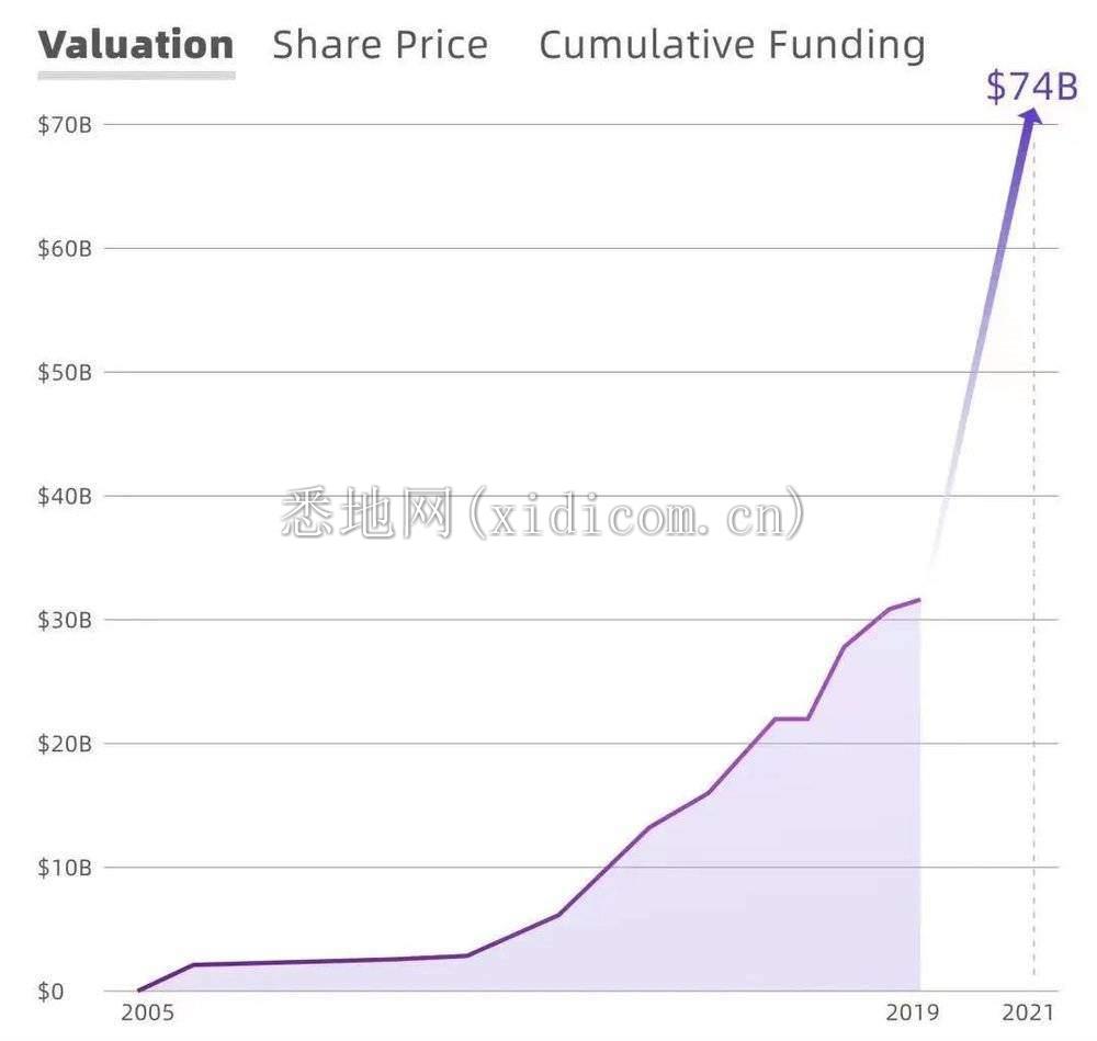 在全球疫情阴影笼罩之下的过去两年里,SpaceX在业绩上不仅完全没受负面影响,倒像是坐上了自家的火箭飞船一般,从2019年的320亿美元涨到了如今的740亿美元,估值暴增400多亿美元。