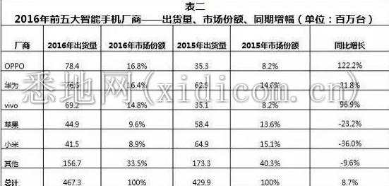 来源:IDC中国季度手机跟踪报告,2017年2月