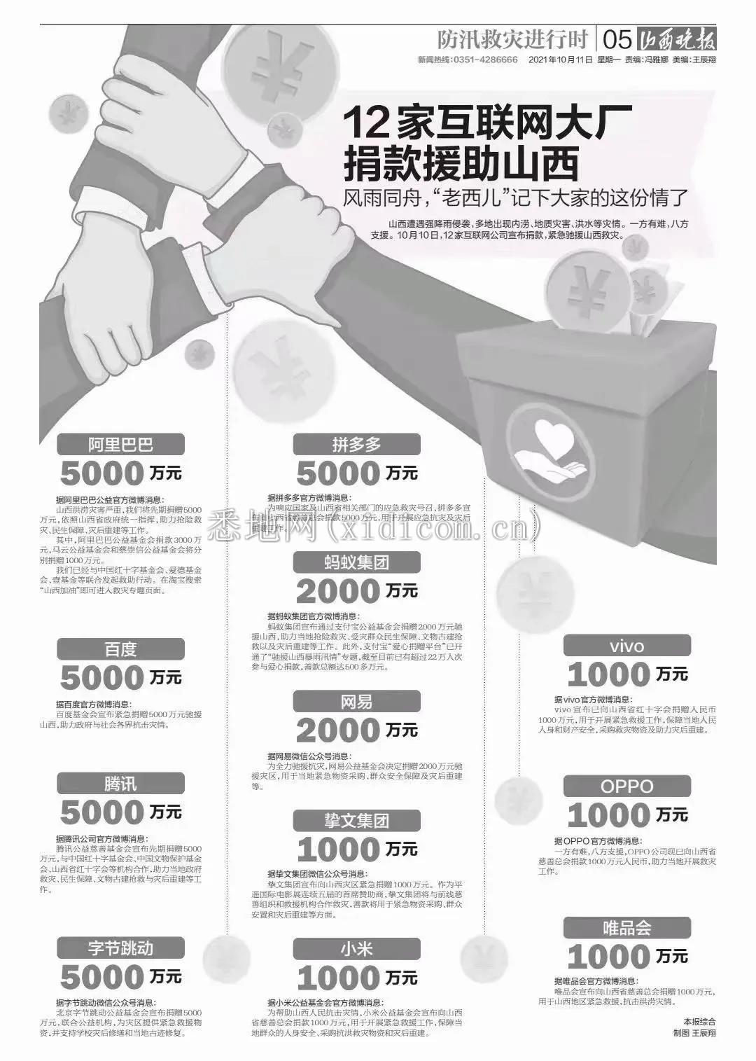 10月9日,国家减灾委、应急管理部启动了IV级救灾应急响应,之后各大互联网企业纷纷捐款捐物,驰援山西。