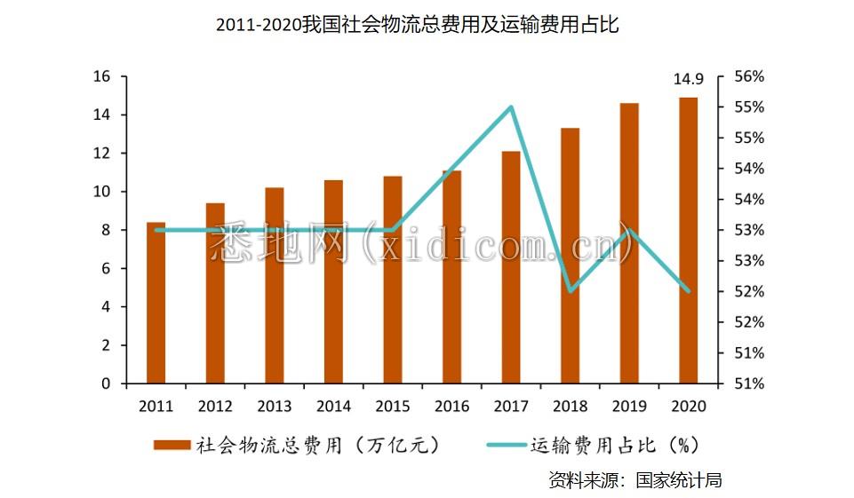 京东、美团领投嬴彻科技,押注干线物流自动驾驶的未来,看好的是整个物流行业广阔的市场空间。随着经济和贸易的快速发展,带动了货运需求增长,物流行业已成为我国重要的现代服务业。根据国家统计局数据,2020年中国社会物流总费用为14.9万亿元,占GDP比重达14.67%。