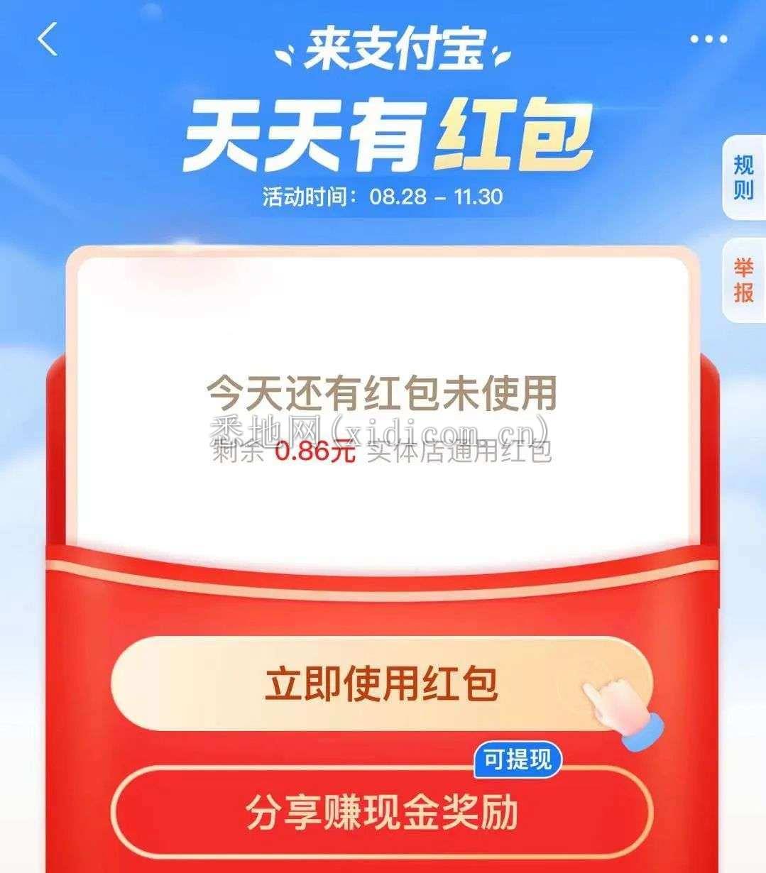 此次国庆扫码红包活动,除了邀请好友扫码领红包,用户赚取现金奖励以外,还有定时的红包雨。