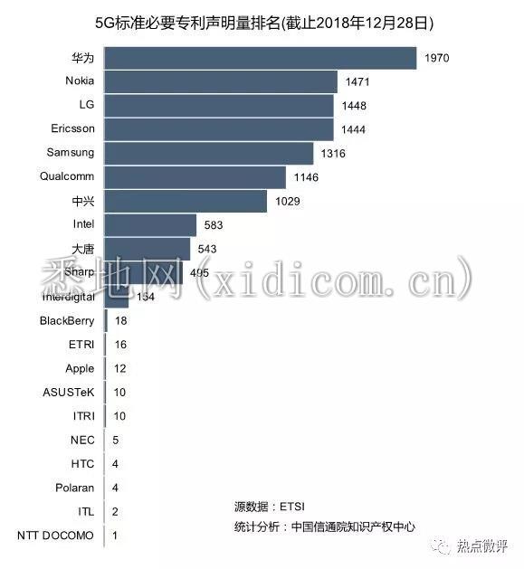从总量上看,诺基亚的5G标准必要的专利声明量达到了1471件,在所有的通信厂商中占据第二名。
