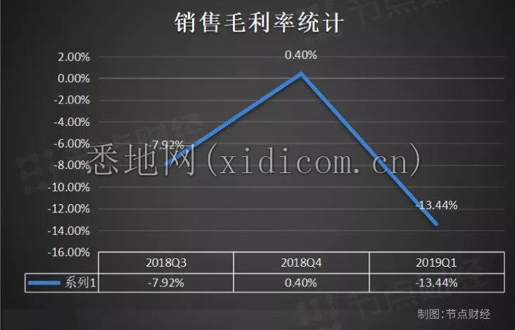 据蔚来汽车发布的2019年Q1财报显示,蔚来第一季度营收16.31亿元,环比下降52.5%;净亏损26.24亿元,环比下降25.1%。