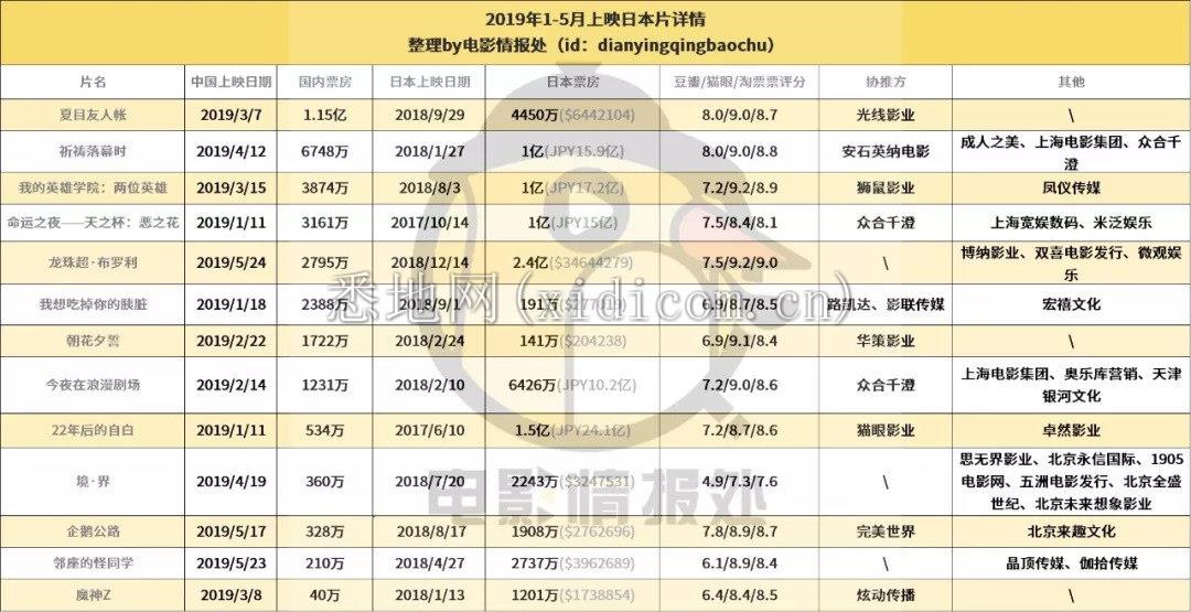 电影情报处(ID:dianyingqingbaochu)从多位日片的老玩家处了解到,相比其他小国别批片,日片的拿片渠道更多,选择更多。而且日片市场正在悄然改变,前两年哄抢片源,导致入手费“水涨船高”的现象正在消退,老玩家控制局面,昙花一现的新买家不见踪影,市场正在趋于理性。那么处于洗牌阶段的日片,目前到底是什么格局?未来突破瓶颈、有利可图的空间又在哪?