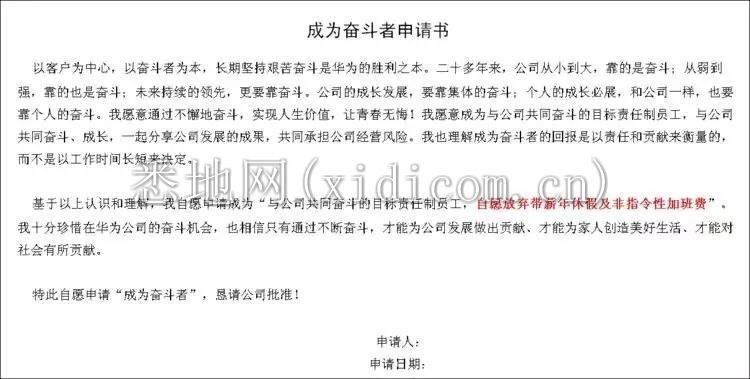 搞技术最重人才,华为压力大是出了名的,网上经常有华为员工自杀的报道。每位进入华为的新员工,都要签一个条件严苛的《奋斗者协议》,“自愿放弃所有带薪年假,自愿进行非指令性加班…… ”